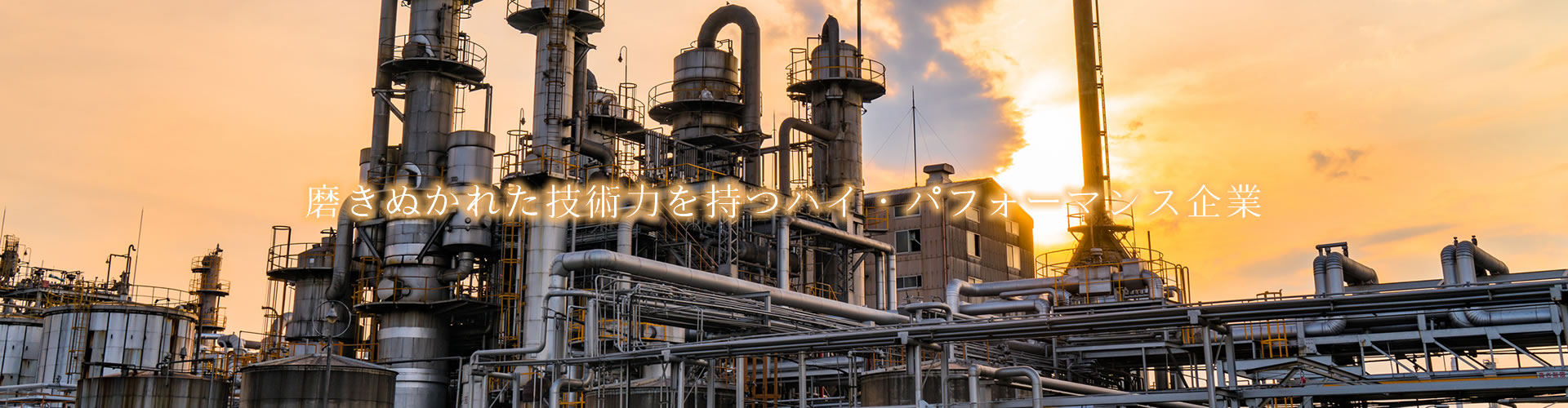 磨きぬかれた技術力を持つハイ・パフォーマンス企業あしたの可能性を無限大に ~たゆまぬ「企業努力」~国内・海外における数々のプラントにおける計画・設計・建設に携わった経験を活かし、【顧客第一】【不良率ゼロ】をモットーに、お客様のニーズにお応えする姿勢を大切にしております。さらに、特化した技術サービスを提供できる国内外のエンジニアリング会社とネットワーク体制を組むことにより、良質で高度な技術サービスで競争力のある価格で提供させていただきます。